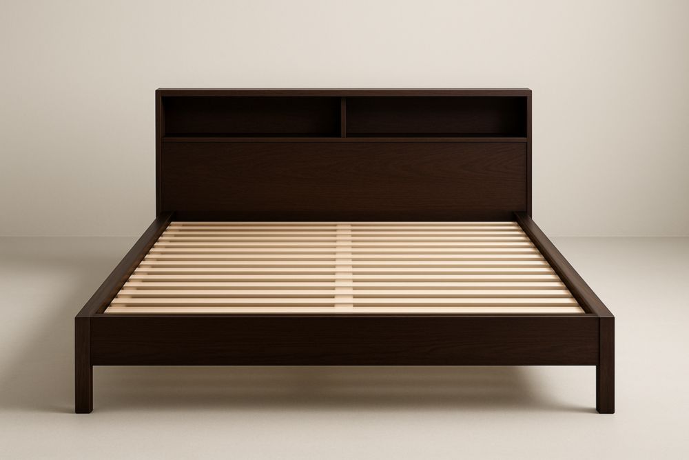 Letto Matrimoniale 150x200 in Pino con Testiera e Vani Aperti Integrati
