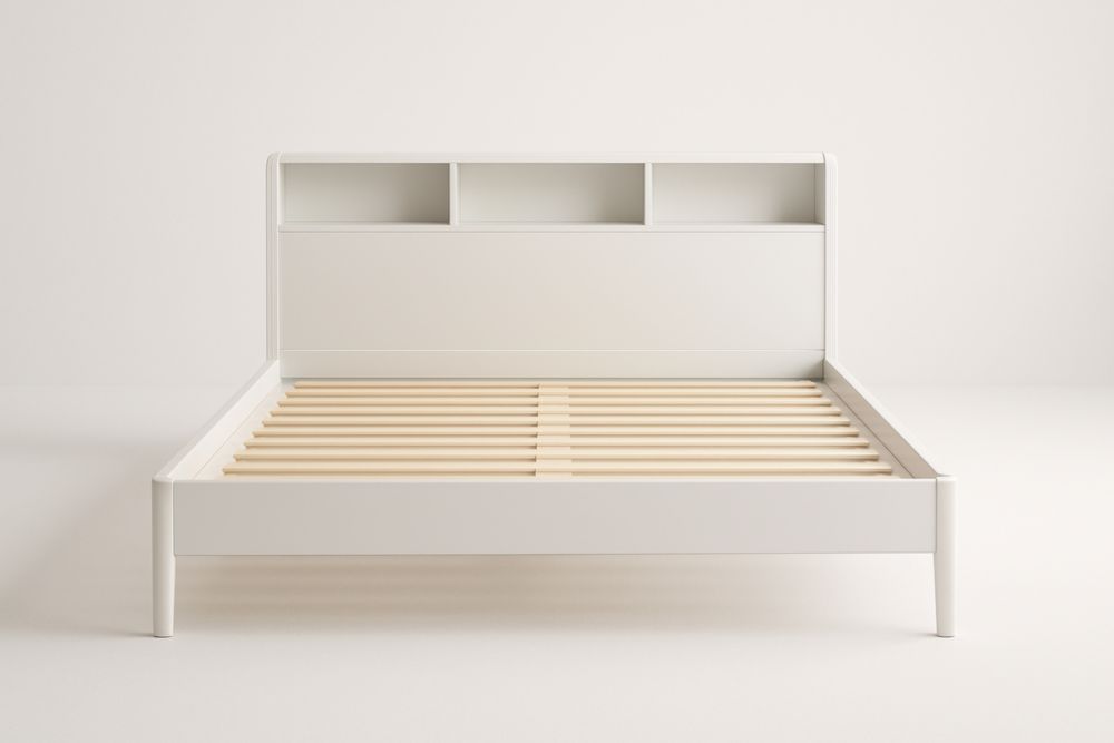 Letto matrimoniale in MDF bianco con testiera e vani portaoggetti 200x160 cm