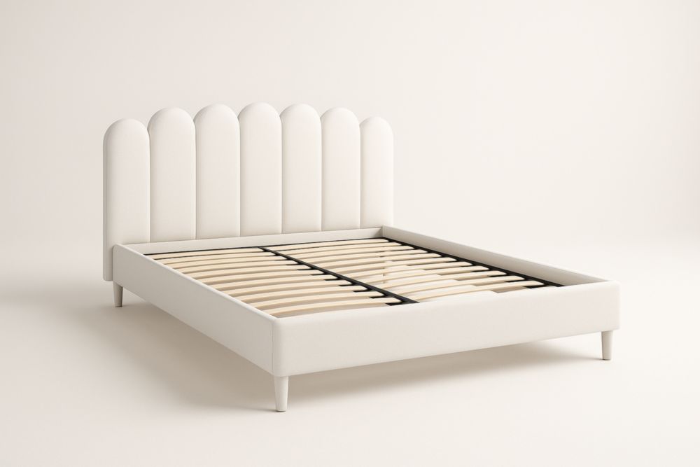 Letto matrimoniale in tessuto bianco con testiera decorativa 200x160 cm