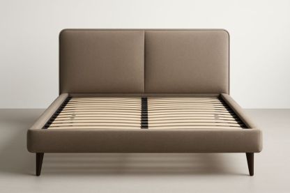 Materiale: Struttura in faggio con telaio in betulla, rivestimento in poliestere con imbottitura in schiuma, testiera imbottita a doppia sezione e doghe in multistrato di faggio.